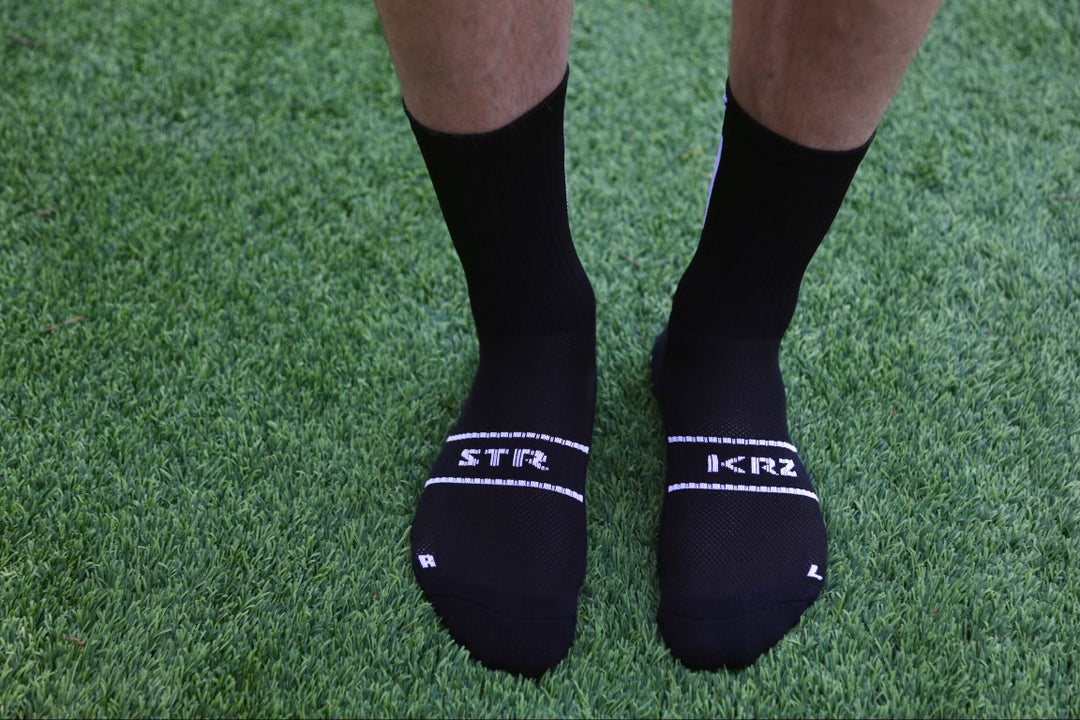 Our socks feature a special blend of cotton, nylon, and spandex materials that provide unmatched comfort and durability for long-lasting performance. With this unique blend of comfort and grip, you can wear them before, during, and after training or competition.